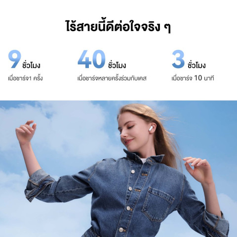 ฟังเพลงต่อเนื่องได้ประมาณ 9 ชั่วโมง และเมื่อใช้ร่วมกับเคสชาร์จสามารถใช้งานได้สูงสุด 40 ชั่วโมง เหมาะกับการเรียน ทำงาน หรือเดินทางคุยสายชัด ตัดเสียงรบกวนด้วย AI