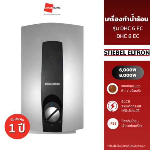 💥5ตัวสุดท้าย💥 เครื่องทำน้ำร้อน STIEBEL ELTRON DHC 6 EC พลังน้ำอุ่นทันใจด้วยกำลังไฟ 6,000W มาตรฐานเยอรมัน ออกแบบให้ใช้งานปลอดภัย ควบคุมอุณหภูมิได้แม่นยำ พร้อม แทงค์ทองแดง แข็งแรงทนทาน เหมาะสำหรับบ้าน คอนโด และห้องน้ำที่ต้องการความมั่นใจทุกครั้งที่อาบน้ำ