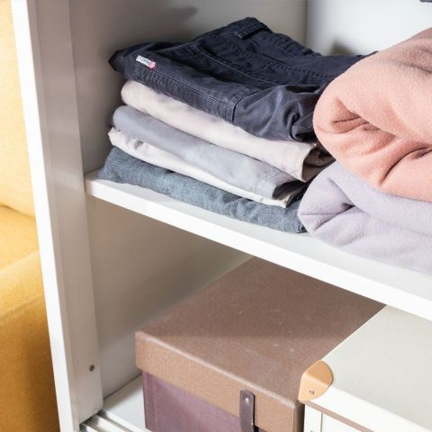 บานเลื่อนทึบ ช่วยประหยัดพื้นที่หน้าตู้ จัดวางในมุมแคบได้สะดวก