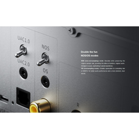 ภายในใช้ DAC R2R แบบ Fully Differential 24-bit ที่ FiiO พัฒนาขึ้นเอง เลือกใช้ตัวต้านทานฟิล์มบางเกรดสูงจำนวน 192 ตัว ให้ความแม่นยำระดับ 0.1% และค่า Drift ต่ำเพียง 30ppm รองรับทั้งโหมด NOS และ OS เพื่อปรับบุคลิกเสียงตามสไตล์การฟังของคุณ ไม่ว่าจะต้องการโทนเป็นธรรมชาติแบบดิบ ๆ หรือเสียงประมวลผลเนียนกริบก็เลือกได้