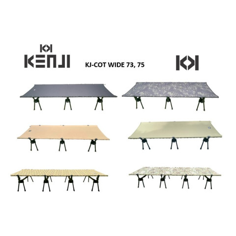 KENJI KJ-COT WIDE 73, 75 เตียงสนาม เตียงสนามสายแคมป์ที่เน้น “แข็งแรง-กว้าง-กางง่าย” นอนสบายยกตัวจากพื้น ลดความชื้นและความเย็น เหมาะทั้งออกทริป เดินป่า แคมป์ปิ้ง หรือใช้เป็นเตียงเสริมที่บ้าน ด้วยโครง Duralumin 7075 แข็งแรงทนทาน และผ้า Cordura 1000D ที่ขึ้นชื่อเรื่องความอึด ใช้งานหนักได้อย่างมั่นใจ