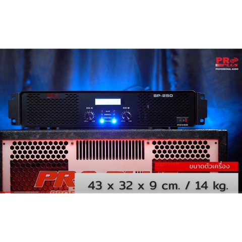 [ฟรีส่ง] POWER AMPLIFIER PRO PLUS SP-250 แอมป์ขยายลำโพงสำหรับงานเสียงที่ต้องการพลังขับแน่นๆ คุมเสียงได้อิสระซ้าย-ขวา เหมาะทั้งงานกลางแจ้ง ร้านอาหาร ห้องซ้อม หรือชุดเครื่องเสียงที่ต้องการแยกโซนความดังคนละพื้นที่ด้วยการปรับ CH A / CH B ได้อย่างเป็นอิสระ มาพร้อมหน้าจอดิจิตอลขนาดใหญ่ และระบบระบายความร้อนเต็มประสิทธิภาพ ใช้งานได้มั่นใจต่อเนื่อง