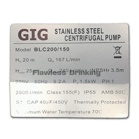 PUMP GIG BLC200 150 1.5KW,220V50HZ01 เป็นปั๊มน้ำหอยโข่งแนวนอน (Centrifugal Pump) รุ่น BLC200/150 ที่ออกแบบมาเพื่อการจ่ายน้ำอย่างมีประสิทธิภาพ เหมาะสำหรับงานระบบน้ำทั้งในบ้านพักอาศัย อาคารพาณิชย์ โรงงาน และงานระบบต่างๆ ที่ต้องการแรงดันและปริมาณน้ำสม่ำเสมอ