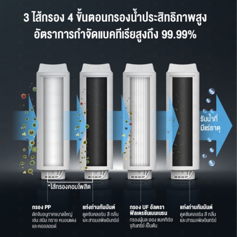 *ข้อมูลอายุการใช้งานและอัตราการกำจัดขึ้นอยู่กับคุณภาพน้ำต้นทาง สภาพแวดล้อม และรูปแบบการใช้งานจริง