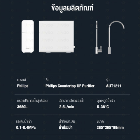 Philips Water Purifier UF AUT1211 เครื่องกรองน้ําดื่ม UF แบบตั้งโต๊ะ พร้อมตู้กดน้ำ เพื่อคุณภาพน้ำดื่มสะอาด ปลอดภัย เก็บแร่ธาตุ ราคาเพียง 5,282.07 บาท