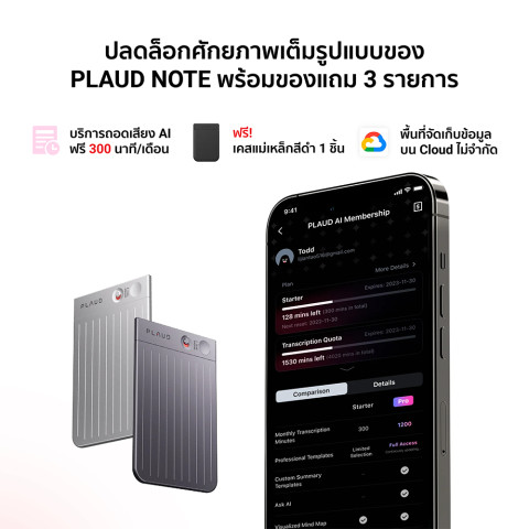 ซิงค์ไฟล์อัตโนมัติ ผ่านแอป PLAUD APP เพื่อจัดเก็บ ถอดเสียง และสรุปข้อมูลบนคลาวด์
