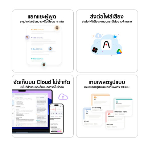 ใครก็ตามที่ประชุมหรือรับข้อมูลบ่อย – ช่วยลดเวลาในการจดเอง และได้ข้อมูลครบถ้วนแม่นยำ