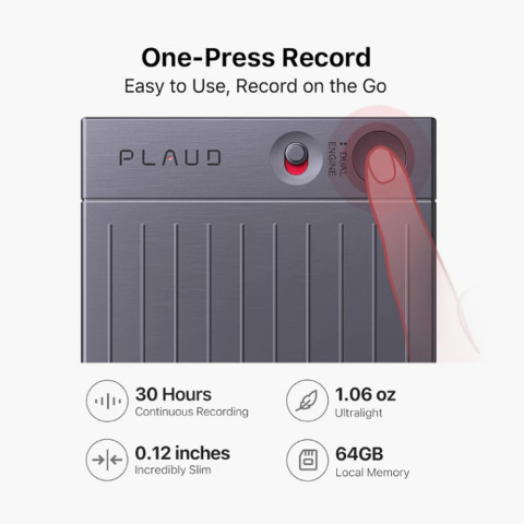PLAUD NOTE ออกแบบมาเพื่อให้การจัดการไฟล์เสียงและข้อความสะดวกที่สุด:พื้นที่เก็บข้อมูลภายใน 64GB รองรับการบันทึกเสียงได้ประมาณ 480 ชั่วโมง (ขึ้นกับรูปแบบไฟล์และคุณภาพเสียง)