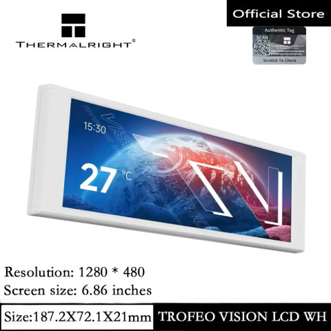 Thermalright TROFEO VISION หน้าจอแสดงผลสำหรับเคสพีซีที่ยกระดับความสวยงามและความเป็นเอกลักษณ์ของเครื่องคุณด้วย จอ LCD IPS ขนาด 6.86 นิ้ว แบบเต็มรูปแบบ ให้ภาพคมชัด สีสันสดใส และมุมมองกว้าง เหมาะสำหรับแสดงสถานะเครื่อง กราฟิกตกแต่ง ภาพ/โลโก้ หรือข้อมูลแบบเรียลไทม์ตามสไตล์คุณ