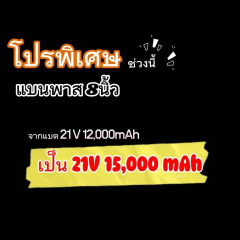 แบตเตอรี่: แบตฟอสเฟต 21V ความจุ 12,000 mAh
