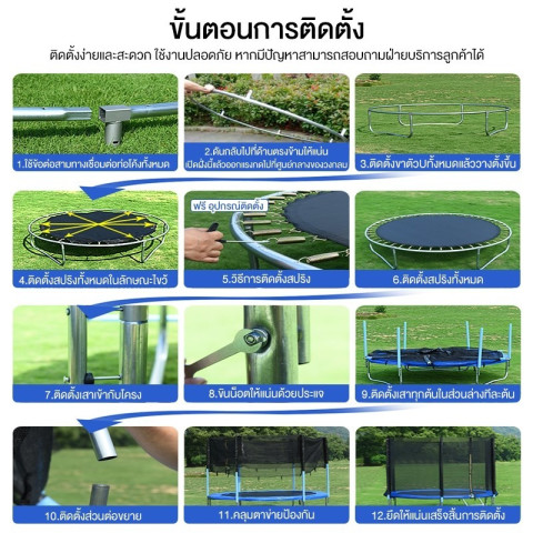 การกระโดดบนแทรมโพลีนช่วยเสริมสร้างสมาธิ การทรงตัว การประสานงานของกล้ามเนื้อ และช่วยให้เด็กๆ ได้ออกกำลังกายอย่างสนุกสนาน เป็นกิจกรรมที่ช่วยเบิร์นพลังงานและลดเวลาอยู่หน้าจอได้ดีรายละเอียดการสั่งซื้อและการจัดส่ง