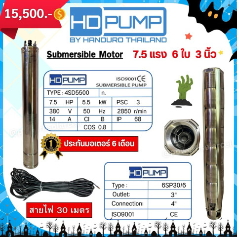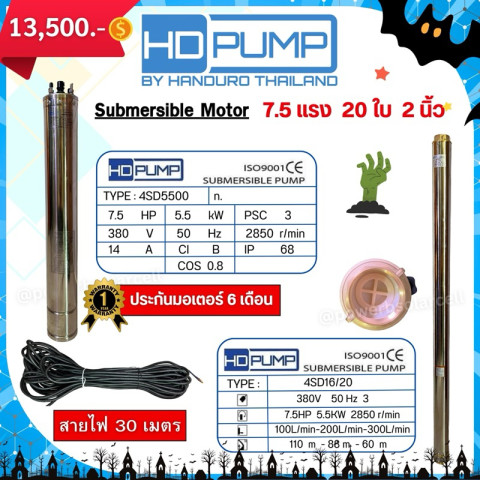 Handuro-pump (HD-PUMP) ปั๊มไฟฟ้า 5.5HP–7.5HP 3 เฟส 380V ปั๊มซับเมิร์ทคุณภาพสูงจาก Handuro Thailand ออกแบบมาสำหรับงานบ่อบาดาลโดยเฉพาะ เหมาะทั้งงานเกษตร ระบบน้ำฟาร์มเลี้ยงสัตว์ และงานสูบน้ำใช้งานทั่วไป ให้กำลังส่งน้ำแรง เต็มประสิทธิภาพ มอเตอร์ทนทาน ใช้งานได้ต่อเนื่องยาวนาน