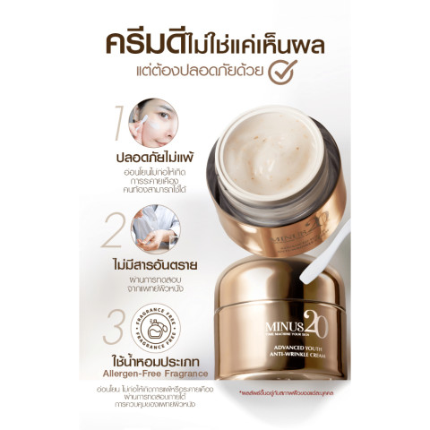 ชื่อสินค้า: Minus20 Advanced Youth Anti-Wrinkle Cream ไมนัสทเวนตี้ แอดวานซ์ ยูธ แอนไท ริงเคิล ครีม