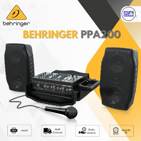 BEHRINGER PPA200 คือชุดลำโพงเคลื่อนที่กำลังขับรวม 200 วัตต์ (2 x 100W) ในรูปแบบกระเป๋าเอกสารขนาดกะทัดรัด ที่รวมมิกเซอร์ 5 แชนเนล ลำโพง ไมโครโฟน และเอฟเฟกต์ดิจิทัลไว้ในชุดเดียว เหมาะอย่างยิ่งสำหรับงานปาร์ตี้ งานโรงเรียน งานนำเสนอขององค์กร งานสัมมนา งานแอโรบิก งานประมูล นักดนตรีที่ต้องเดินทางเป็นประจำ ไกด์นำเที่ยว งานแต่งงาน และกิจกรรมเคลื่อนที่ทุกรูปแบบ