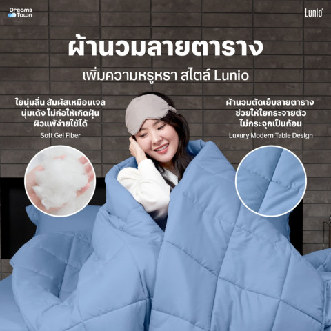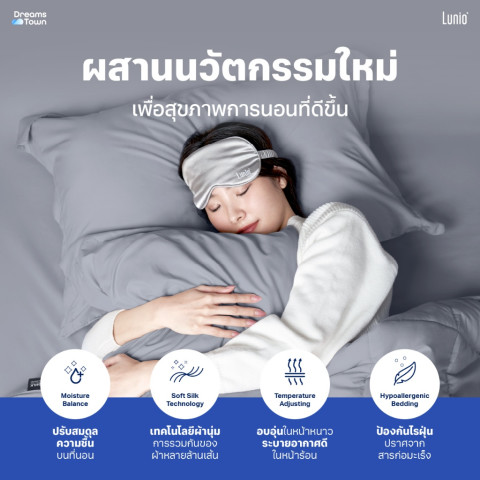 เทคโนโลยีเฉพาะของ Lunio ที่รวมเส้นใยขนาดเล็กจำนวนหลายล้านเส้นเข้าด้วยกัน ทำให้ผ้าหนานุ่ม ลื่นสบาย ให้สัมผัสแบบซาตินแต่ไม่ลื่นจนเกินไปTemperature Adjusting ปรับอุณหภูมิได้ตามสภาพอากาศ