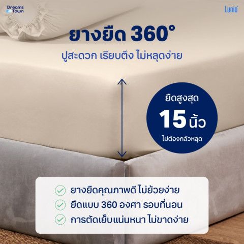 ผ้าปูที่นอนมียางยืด 360° รัดขอบรอบที่นอน ปูง่าย แนบสนิท ตึงเรียบ ไม่เลื่อน ไม่หลุดง่าย รองรับที่นอนหนาได้สูงสุดประมาณ 15 นิ้ว
