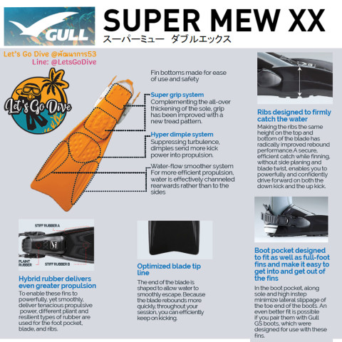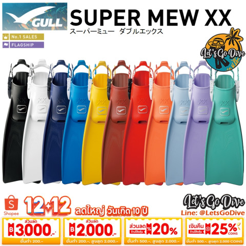 พร้อมออกทริปดำน้ำแบบมั่นใจทุกกระแสน้ำ เลือก GULL - Super Mew XX - Open Heel Fins แล้วเตรียมตัวไปดำน้ำกัน!