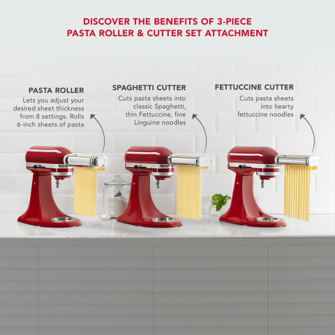 KITCHENAID อุปกรณ์เสริมรีดแป้ง (Pasta Roller & Cutter) รุ่น KSMPRA ราคา 9,872.40 บาท ชุดอุปกรณ์ที่สมบูรณ์แบบสำหรับยกระดับมื้อพิเศษของคุณ ให้การทำพาสต้าสดที่บ้านเป็นเรื่องสนุกและได้เส้นพาสต้าแท้ ๆ เนียนสวยสม่ำเสมอ เพียงต่อเข้ากับเครื่องผสมอาหาร KITCHENAID ก็พร้อมรีดและตัดเส้นได้อย่างมืออาชีพ