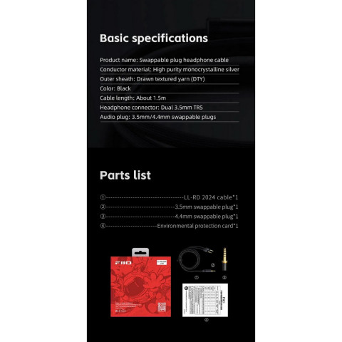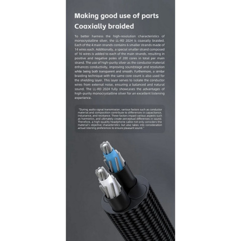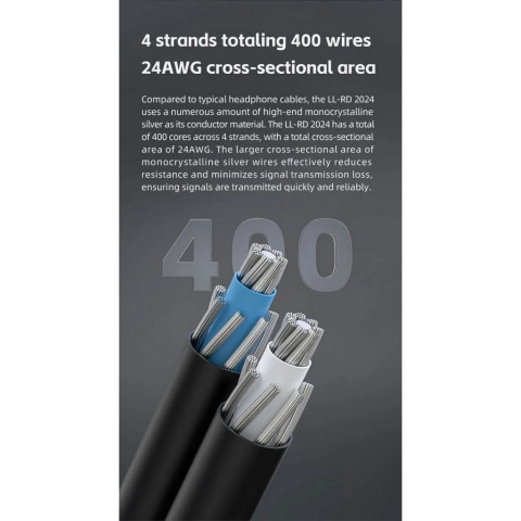 ยกระดับคุณภาพเสียงหูฟังของคุณสู่มาตรฐานออดิโอไฟล์ด้วยสายอัพเกรดระดับไฮเอนด์ [-ประกันศูนย์ไทย-] FiiO LL-RD 2024 สายหูฟัง Headphone ที่ใช้วัสดุตัวนำเป็นเงินสเตอร์ลิงผลึกเดี่ยว (Monocrystalline Silver) ความบริสุทธิ์สูง ถ่ายทอดรายละเอียดเสียงได้อย่างแม่นยำ โปร่งใส และมีมิติยิ่งขึ้น มาพร้อมระบบปลั๊กแบบถอดเปลี่ยนได้ รองรับทั้ง 3.5mm Single-ended และ 4.4mm Balanced ให้คุณใช้งานได้อย่างยืดหยุ่นกับอุปกรณ์หลากหลาย
