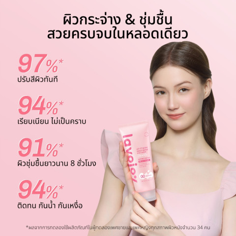 ลูบไล้ให้ทั่วบริเวณผิวกายที่ต้องการปรับโทนผิวให้กระจ่างใส