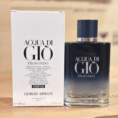 (PARFUM) GIORGIO Armani Acqua Di Gio Profondo PARFUM 100 ml น้ำหอมผู้ชายระดับไอคอนจากจิออร์จิโอ อาร์มานี ที่พาคุณดำดิ่งสู่เสน่ห์ลึกล้ำของท้องทะเล กลิ่นหอมแนวอะโรมาติก-วู้ดดี้ ที่ทั้งสดชื่น ล้ำลึก และเข้มขรึมในเวลาเดียวกัน เหมาะสำหรับผู้ชายที่มั่นใจ มีสไตล์ และชอบความรู้สึกหรูหราทุกครั้งที่ก้าวออกจากบ้าน