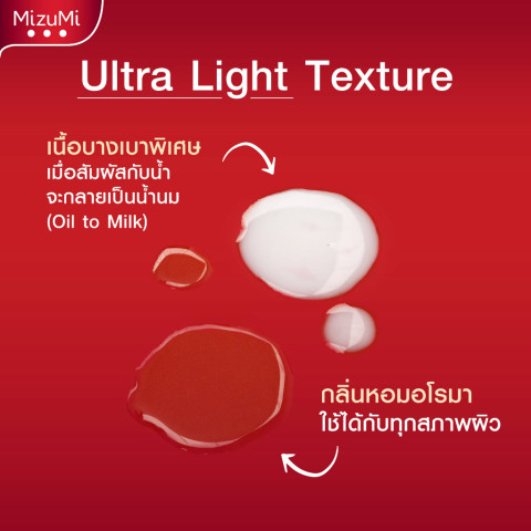 สูตรออยล์เนื้อบางเบา: เกลี่ยง่าย ลื่นผิว ไม่หนักหน้า ไม่เหนียวเหนอะหนะ และไม่ทำให้ตาแสบ
