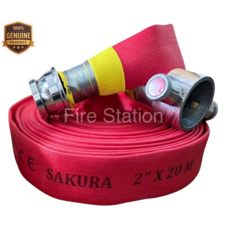 สายส่งน้ำ สายดับเพลิงสีแดง ยี่ห้อ “SAKURA” ชนิดผ้าใบ 2 ชั้น พร้อมเคลือบผิวชั้นนอกด้วยยาง ELASTOMER ถูกออกแบบมาเพื่อการใช้งานดับเพลิงอย่างมืออาชีพ ทั้งในอาคาร โรงงาน คลังสินค้า และสถานที่ที่ต้องการมาตรฐานความปลอดภัยสูง ด้วยโครงสร้างผ้าใบ 2 ชั้นที่เหนียวแน่นและการเคลือบยางคุณภาพเยี่ยม ทำให้สายส่งน้ำรุ่นนี้มีความทนทานสูง ใช้งานได้ยาวนาน และรองรับการลากถูบนพื้นผิวหยาบได้เป็นอย่างดี