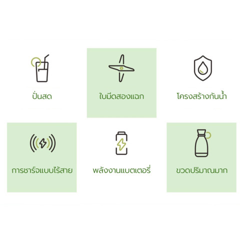 เวลาการใช้งาน: ปั่นได้ประมาณ 15 แก้วต่อการชาร์จเต็ม (ขึ้นกับชนิดวัตถุดิบ)