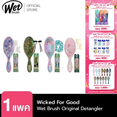 ภายในชุดลายวิคเค็ดนี้ คุณจะได้แปรงหวีผมทรงรีที่ใช้เทคโนโลยีขนแปรงลิขสิทธิ์เฉพาะ Intelliflex (อินเทลิเฟลกซ์) ที่ช่วยให้การสางผมลื่นกว่าที่เคย ลดการดึงรั้งและการขาดหลุดร่วงของเส้นผม พร้อมทั้งแอคเซสซอรี่สุดน่ารักเข้าชุดกันในแต่ละลาย เหมาะสำหรับใช้เองหรือมอบเป็นของขวัญ
