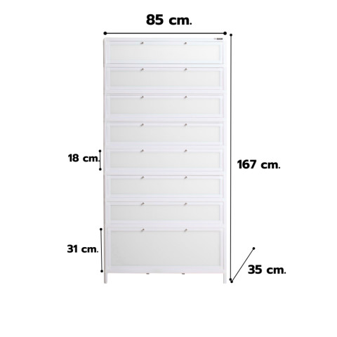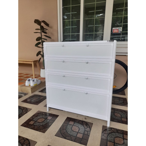 รุ่นนี้เป็นงานสั่งทำพิเศษ สเปค Plus สีขาว 8 ชั้น พร้อมมือจับสีขาว เหมาะสำหรับครอบครัวหรือผู้ที่มีรองเท้าหลายคู่ ต้องการความจุสูง แต่ยังคงความเรียบร้อยสวยงาม ช่วยให้พื้นที่หน้าบ้านหรือโซนแต่งตัวของคุณดูสะอาดและเป็นระบบมากขึ้น