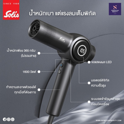 หากคุณกำลังมองหาไดร์เป่าผมที่ทั้งฉลาด ทรงพลัง และอ่อนโยนต่อเส้นผม SOLIS Smart Hair Dryer 630 Pro คือคำตอบสำหรับผมสุขภาพดี เงางาม และการจัดทรงที่ง่ายขึ้นในทุกวัน ไม่ว่าจะใช้เองที่บ้านหรือในร้านซาลอน ก็ให้ผลลัพธ์ระดับมืออาชีพได้อย่างมั่นใจ