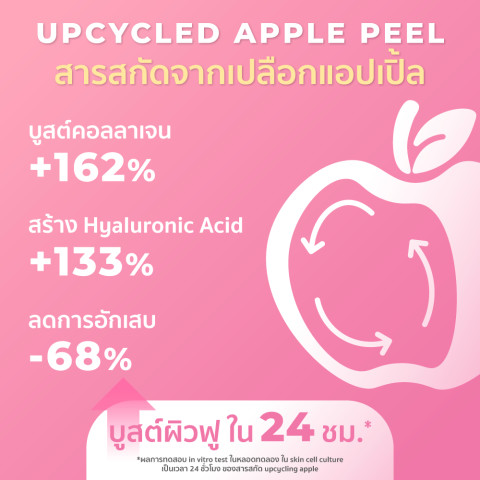 ฟื้นบำรุงด้วย Upcycled Apple Peel Extract สารสกัดจากเปลือกแอปเปิ้ลผ่านกระบวนการอัปไซเคิล รักษ์โลกและผิวในเวลาเดียวกัน ช่วยกระตุ้นคอลลาเจน ลดเลือนริ้วรอย ให้ผิวแลดูกระชับ อ่อนเยาว์