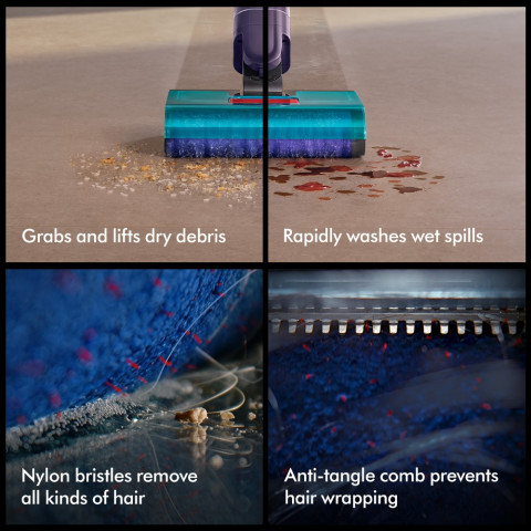 มอเตอร์ Dyson หมุนแปรงด้วยความเร็วสูง ช่วยกำจัดสิ่งสกปรกได้อย่างรวดเร็วและทรงพลังพื้นแห้งไว ไร้คราบน้ำ/รอยเส้น