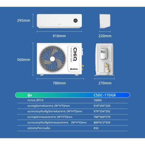 ขนาดคอยล์ร้อน (กว้าง×สูง×ลึก): 780 × 560 × 270 มม.