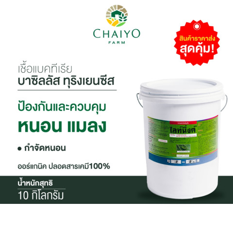 ชีวภัณฑ์กำจัดหนอน ออร์แกนิค ไลท์นิ่งค์ (Bacillus thuringiensis var. kurstaki) ขนาด 10 กก. ราคา 7,900.00 บาท ชีวภัณฑ์คุณภาพสูงรูปแบบผงเปียกน้ำ (WP) ความเข้มข้น 36,000 IU/mg ช่วยป้องกันและกำจัดหนอนศัตรูพืชได้หลากหลายชนิด เหมาะสำหรับเกษตรกรและผู้ปลูกพืชที่ต้องการทางเลือกที่เป็นมิตรต่อสิ่งแวดล้อม ใช้ได้กับพืชผัก ไม้ผล และไม้ดอกไม้ประดับ ทุกชนิดและทุกระยะการเจริญเติบโต