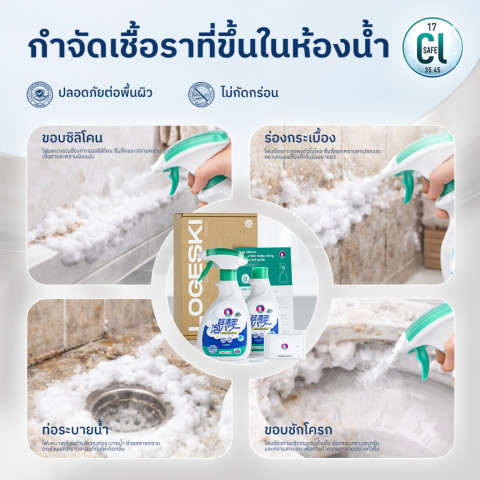 LOGESKI โฟมล้างห้องน้ำ ไม่ต้องใช้แปรง ตัวช่วยทำความสะอาดห้องน้ำให้เอี่ยมแบบประหยัดแรง ด้วยเทคโนโลยี Auto Bubble Clean™ โฟมหนาแน่นเกาะติดพื้นผิวได้ดี ช่วยสลายคราบฝังแน่นได้อย่างรวดเร็ว ทั้งคราบตะกรัน คราบสกปรกตามซอกมุม พร้อม กำจัดกลิ่นไม่พึงประสงค์ และช่วย ยับยั้งเชื้อรา/แบคทีเรีย ให้ห้องน้ำสะอาด สดชื่น น่าใช้งานทุกวัน