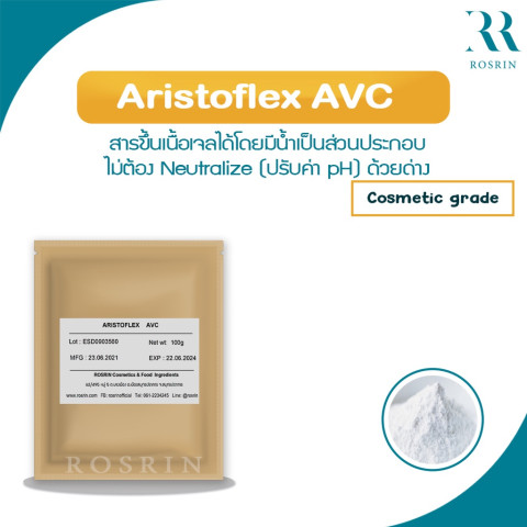 Aristoflex AVC สารขึ้นเนื้อเจลคุณภาพ Cosmetic Grade จาก Clariant (Spain) ช่วยสร้างเจลใสเนียนสวยได้ง่ายด้วยน้ำเป็นหลัก และจุดเด่นคือ ไม่ต้อง Neutralize (ปรับค่า pH) ด้วยด่าง เหมาะสำหรับผู้พัฒนาสูตรที่ต้องการเนื้อสัมผัสดี เสถียร และทำงานแบบ Cold Process ได้สะดวก รวดเร็ว