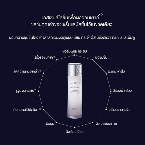 DECORTE Youth Power Advanced Essence 150 mL เอสเซนซ์โลชั่นสูตรเข้มข้นที่มุ่งดูแล “จุดเปลี่ยนสำคัญของผิวอ่อนเยาว์” เพื่อผิวดูแน่นฟู เรียบเนียน และเปล่งประกายอย่างมีพลังในทุกวัน