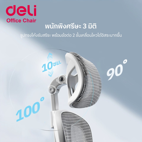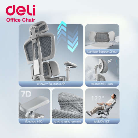 Deli เก้าอี้สำนักงานเพื่อสุขภาพ ปรับความสูงได้ 5 ระดับ ที่วางแขนปรับได้รอบทิศ (Office Chair) ให้คุณนั่งทำงานสบายขึ้นตลอดวันด้วยดีไซน์เพื่อสรีระ รองรับหลังและเอวอย่างเหมาะสม พร้อมฟังก์ชันปรับได้ละเอียด เหมาะทั้งออฟฟิศและโฮมออฟฟิศ ในราคา 5,179.63 บาท