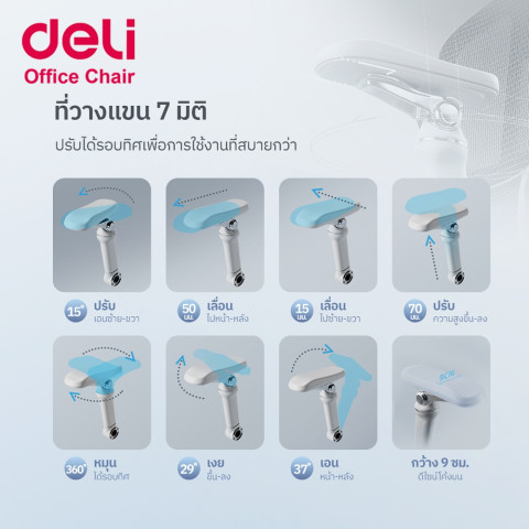 ที่วางแขนปรับ 7 มิติ (7D) ปรับรอบทิศ รองรับทุกท่านั่งทำงาน