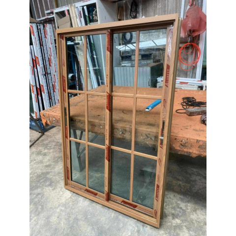 หน้าต่างบานเลื่อนสลับ กว้าง 110 ซม. (สูง 100/110/120/150 ซม.) กรอบสีไม้สักทองแต่งลายตราราง ดีไซน์สวยคลาสสิก โทนไม้สักทองเข้ากับบ้านได้หลายสไตล์ พร้อมลายตรารางเพิ่มความโดดเด่น เหมาะสำหรับห้องนอน ห้องครัว ห้องรับแขก หรือพื้นที่ที่ต้องการการระบายอากาศและแสงธรรมชาติแบบพอดี ๆ