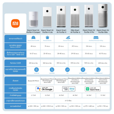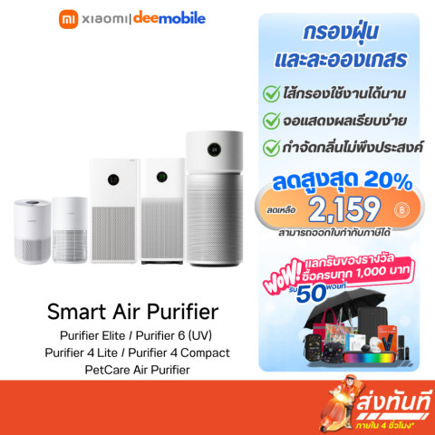 Xiaomi Smart Air Purifier Pet Care / 4 Compact / 4 Lite / Air 6 / Elite เครื่องฟอกอากาศแท้ รับประกันศูนย์ไทย ช่วยลดฝุ่น PM2.5 ควัน กลิ่นไม่พึงประสงค์ รวมถึงขนสัตว์และสารก่อภูมิแพ้ เพื่ออากาศที่สะอาดสดชื่น เหมาะทั้งบ้าน ห้องนอน ห้องนั่งเล่น และออฟฟิศ