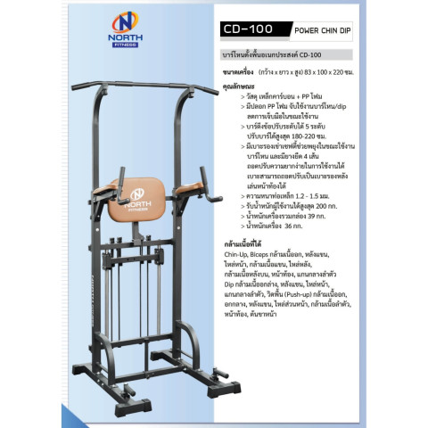 NORTH FITNESS รุ่น CD-100 POWER CHIN DIP บาร์โหนตั้งพื้นอเนกประสงค์ โครงสร้างเหล็กแข็งแรง ใช้งานได้หลากหลายทั้งโหนบาร์, Dip และเล่นหน้าท้อง เหมาะสำหรับโฮมยิม บ้าน หรือคอนโดที่ต้องการอุปกรณ์ครบในเครื่องเดียว โดยไม่ต้องเจาะผนัง