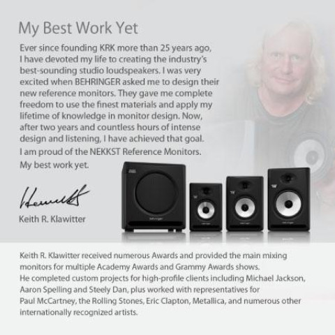 (ของแท้ ประกันบูเช่ 1ปี) BEHRINGER NEKKST K8 (คู่) ลำโพงสตูดิโอมอนิเตอร์ขนาด 8 นิ้ว ที่ให้เสียงแม่นยำสำหรับงานมิกซ์/มาสเตอร์ ตั้งแต่โฮมสตูดิโอไปจนถึงโปรเจกต์สตูดิโอ ออกแบบโดย Keith R. Klawitter นักออกแบบระดับตำนานผู้ก่อตั้ง KRK เพื่อให้ได้บาลานซ์เสียงที่เชื่อถือได้ รายละเอียดชัด เบสแน่น และมิติเสียงกว้าง เหมาะทั้งงานโปรดักชัน ดนตรี และงานเสียงคอนเทนต์