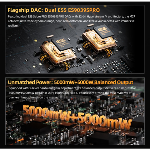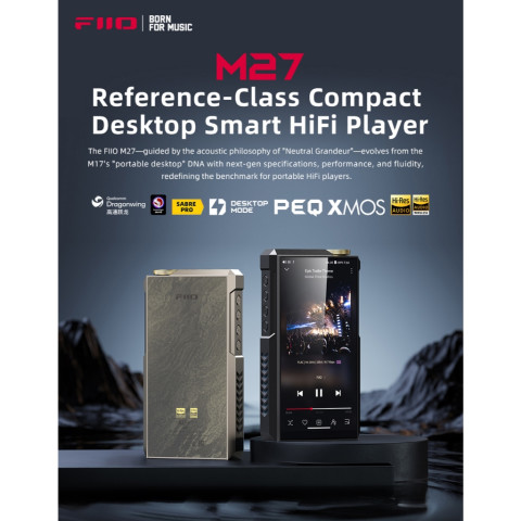 [ประกันศูนย์ไทย] FiiO M27 DAP เครื่องเล่นเพลงพกพา HiFi อัจฉริยะระดับเรือธง ที่ยก “พลังระดับเดสก์ท็อป” มาไว้ในมือคุณ เหมาะสำหรับคนรักเสียงเพลงที่ต้องการความละเอียดของเสียงแบบจัดเต็ม พร้อมการทำงานลื่นไหลและการเชื่อมต่อไร้สายที่ทันสมัย รองรับ Dual Hi-Res เพื่อประสบการณ์ฟังเพลงที่คมชัด มีมิติ และทรงพลังทั้งในบ้านและนอกบ้าน