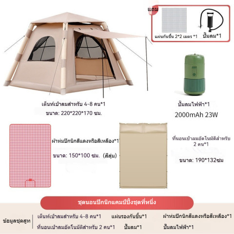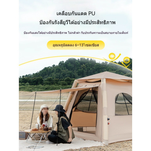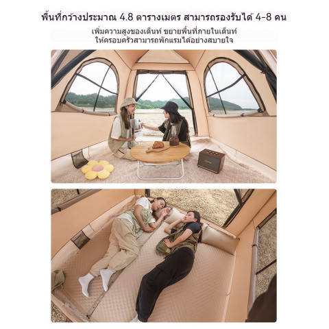 เต็นท์เป่าลมสีเบจ ขนาดใหญ่ เปิดเร็ว กันแดด กันน้ำ ราคา 9,548.00 บาท เต็นท์แคมป์ปิ้งโทนครีมเรียบหรู ที่ผสาน “ความเร็วในการกาง” กับ “พื้นที่ใช้สอยกว้าง” ได้อย่างลงตัว เหมาะสำหรับคู่รักหรือแก๊งเพื่อนที่อยากได้ที่พักกลางแจ้งที่ดูดี ใช้งานจริง และพร้อมลุยทุกทริป
