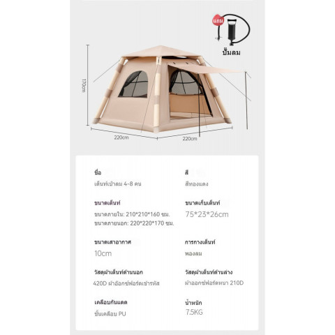 ประเภท: เต็นท์เป่าลม (กางเร็ว)