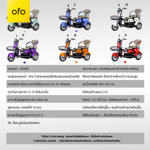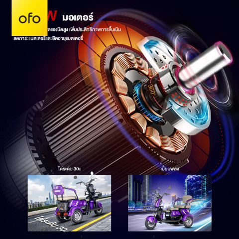 OFOEBIKE 1000W รถสามล้อไฟฟ้าผู้ใหญ่ 3 ล้อ แบตลิเธียม 48V 15Ah (ถอดได้) ล้อแม็ก ขับขี่มั่นคง นั่งได้สูงสุด 3 คน เหมาะทั้งใช้งานในบ้าน ออกตลาด รับ-ส่งคนในครอบครัว หรือขี่เดินทางระยะใกล้ๆ สะดวก ปลอดภัย และประหยัดค่าเดินทาง