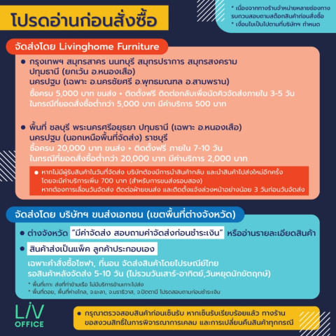 หากไม่มีผู้รับสินค้าในวันจัดส่ง บริษัทต้องนำสินค้ากลับและจัดส่งใหม่ มีค่าบริการเพิ่ม 700 บาท (รอบสอง)