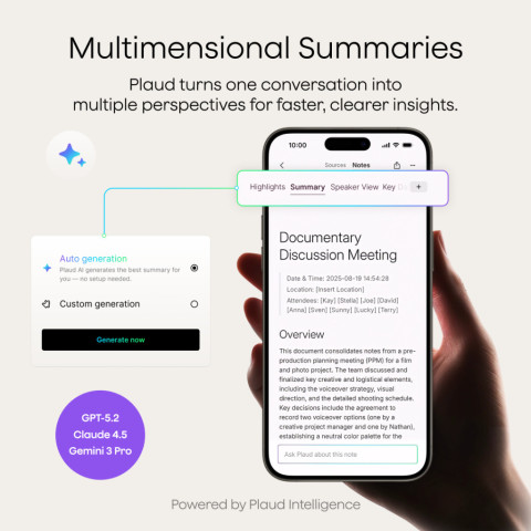 บันทึกเสียง จดโน้ต ถ่ายภาพ และไฮไลต์ข้อความ เพื่อให้ AI เข้าใจบริบทการสนทนาได้ครบถ้วนยิ่งขึ้นสรุปได้หลายมุมมอง (Multidimensional Summaries)